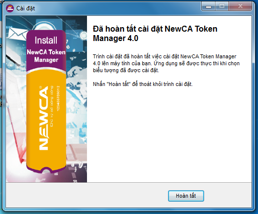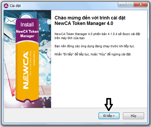 Lúc này máy tính hiện lên tiếp chào mưng bạn cài đặt Newca token... Bạn chọn đi tiếp