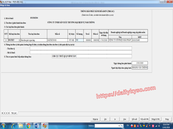 Bạn tạo mẫu thông báo phát hành hóa đơn trên phần mềm HTKK của tổng cục thuế điền đầy đủ thông tin chi tiết như hình dưới đây kết xuất file XML .