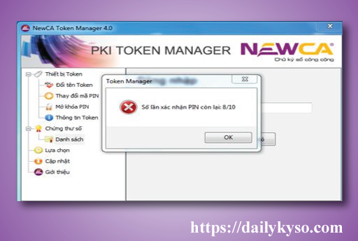 (Hình ảnh cảnh báo usb token bị khóa do nhập sai quá số lần quy định)