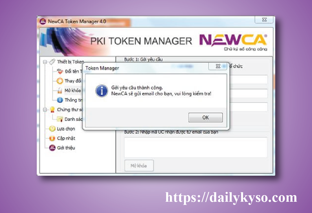 Bước 4: Bạn sao chép mã UC và paste và dán vào trong trình bước 2 NewTel-CA Token manager